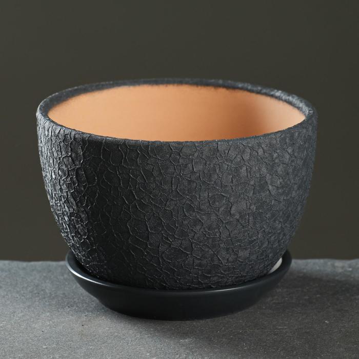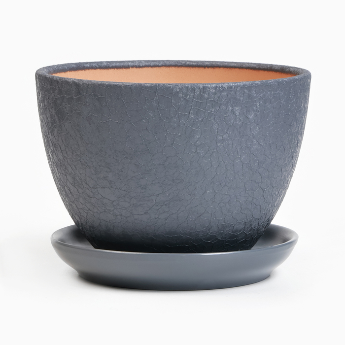 Горшок для цветов «Шёлк», 1.65 л, d=17 см, h=13 см, керамика, с поддоном, серый