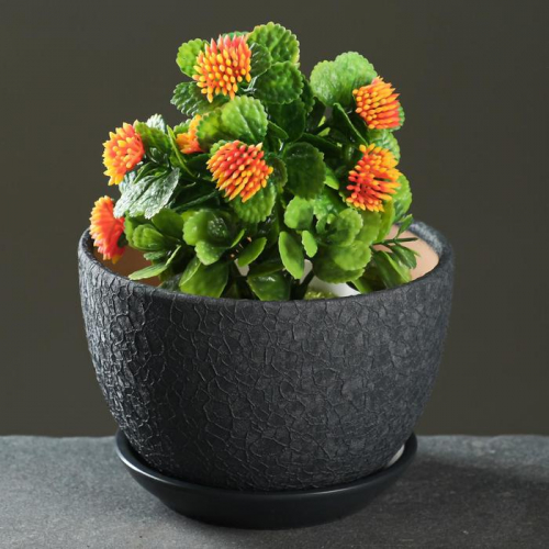 Горшок для цветов «Шёлк», 750 мл, d=14 см, h=10 см, керамика, с поддоном, серый