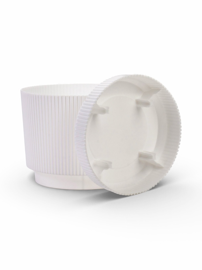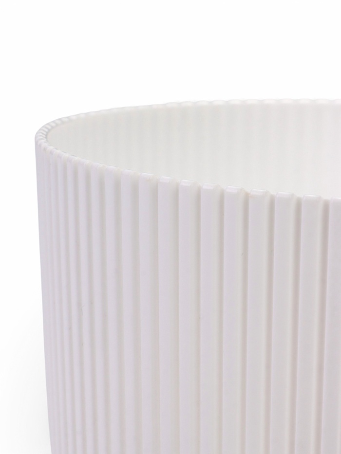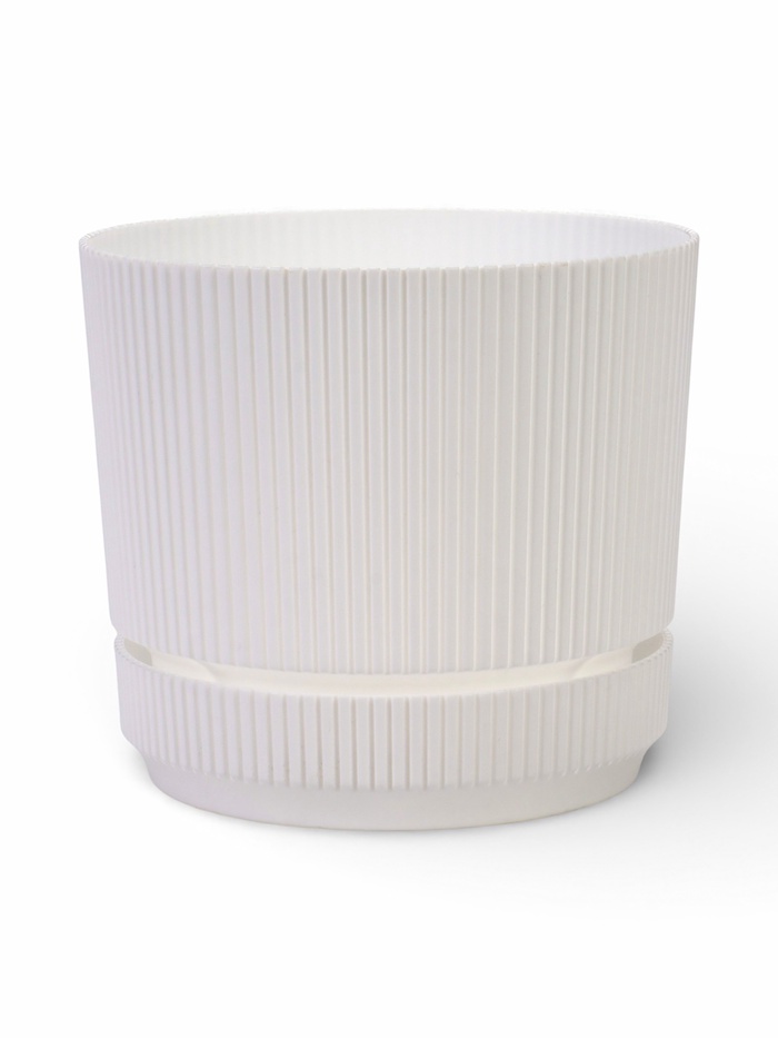 Белый пластиковый горшок «Стрип» 3.9 л с поддоном создан для взрослых комнатных растений. Его конструкция предлагает простой и эффективный уход, а форма обеспечивает устойчивость.