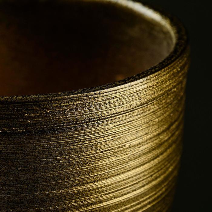 Горшок для цветов «Тёмное золото», керамический, с поддоном, 8 л, коричневый с золотой полосой
