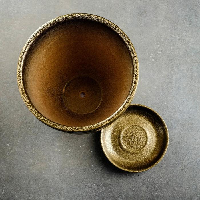 Керамический горшок «Тёмное золото» с поддоном — это вместительный сосуд для комнатных растений. Горшок создаёт оптимальные условия для корневой системы и дополняет интерьер.