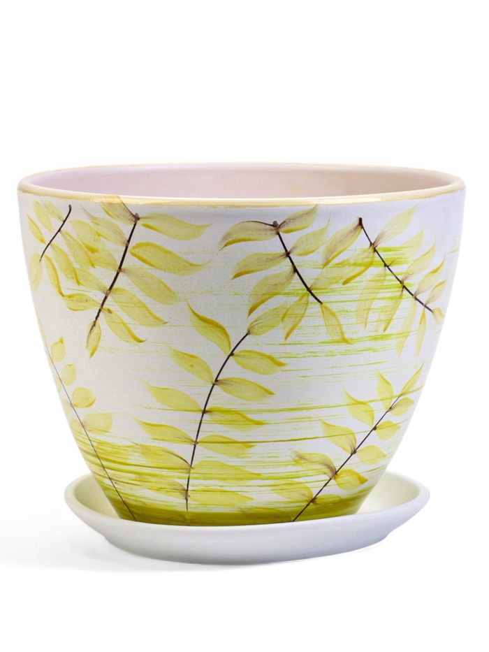 Горшок для цветов «Тропики», 8 л, d=28.5 см, h=22 см, керамика, с поддоном, белый