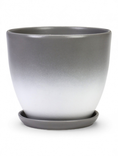 Керамический горшок «Туман» с поддоном, 5 л, серый — это настольная модель с дымчатым градиентом. Его холодный оттенок и солидный объём создают строгий и современный акцент для крупных комнатных растений.