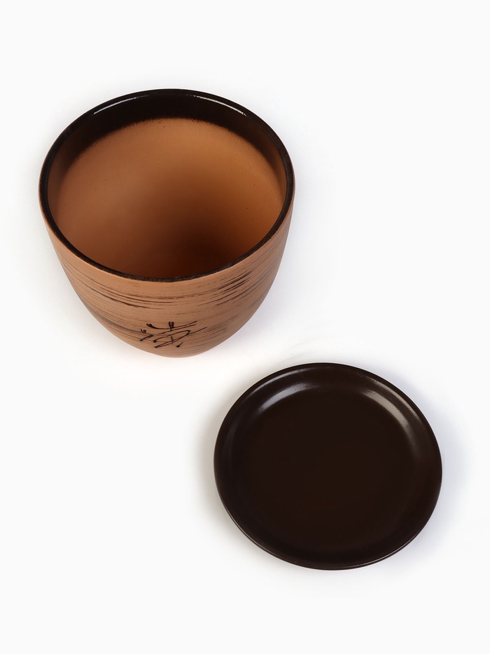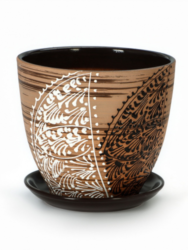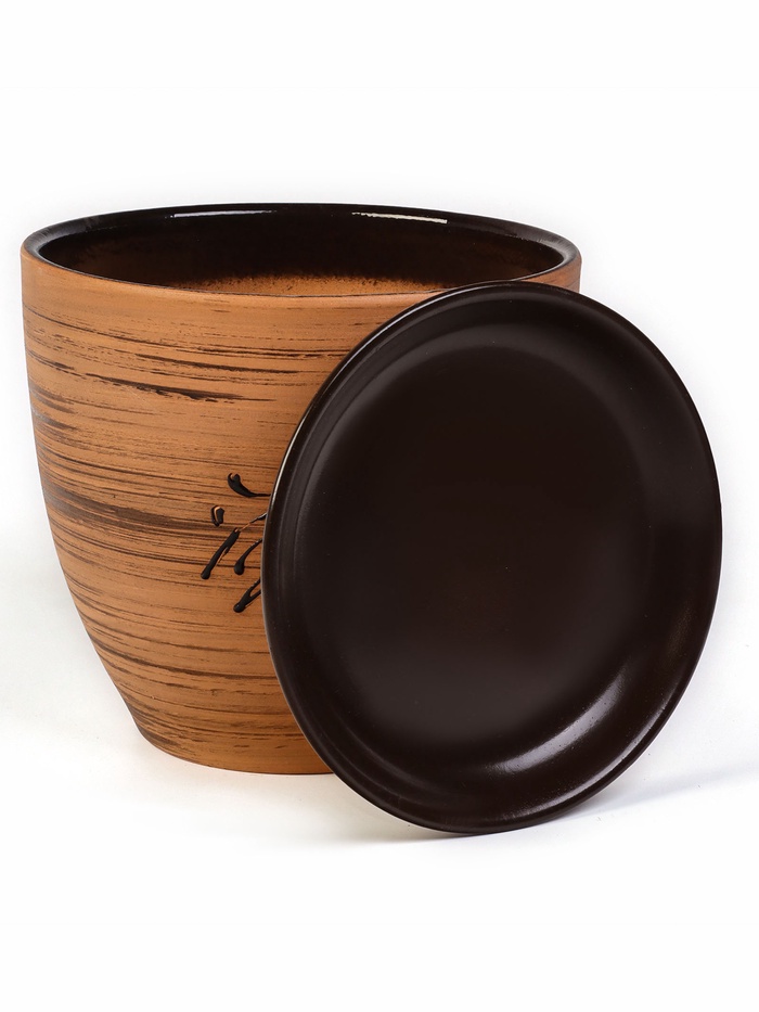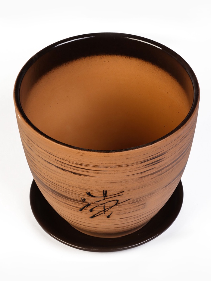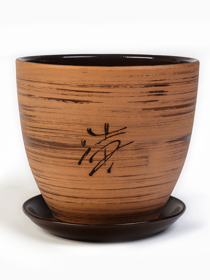Горшок для цветов «Восток», керамический, с поддоном, 5 л, коричневый с иероглифом