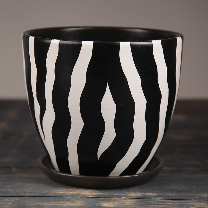 Горшок для цветов «Зебра № 4», керамический, с поддоном, 2.6 л, овальная форма, чёрно-белый