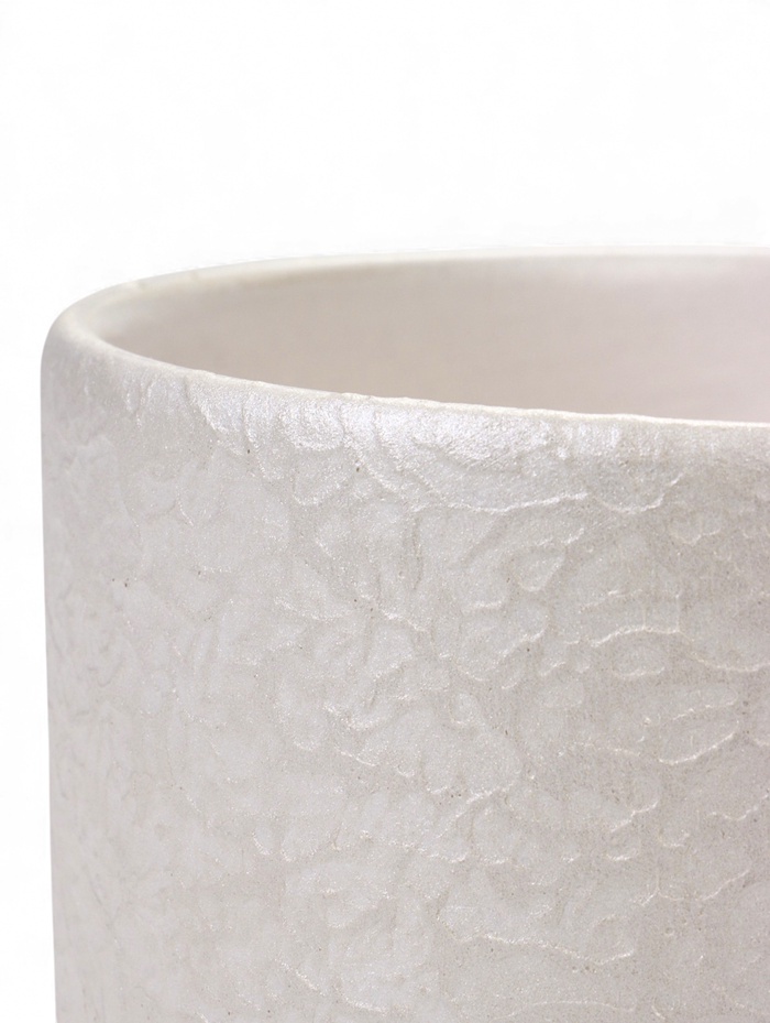 * Дизайн с объёмной фактурой: рельефная поверхность создаёт интересную игру света и тени. Эта деталь добавляет простой форме визуальную глубину и делает горшок выразительным акцентом в интерьере.
