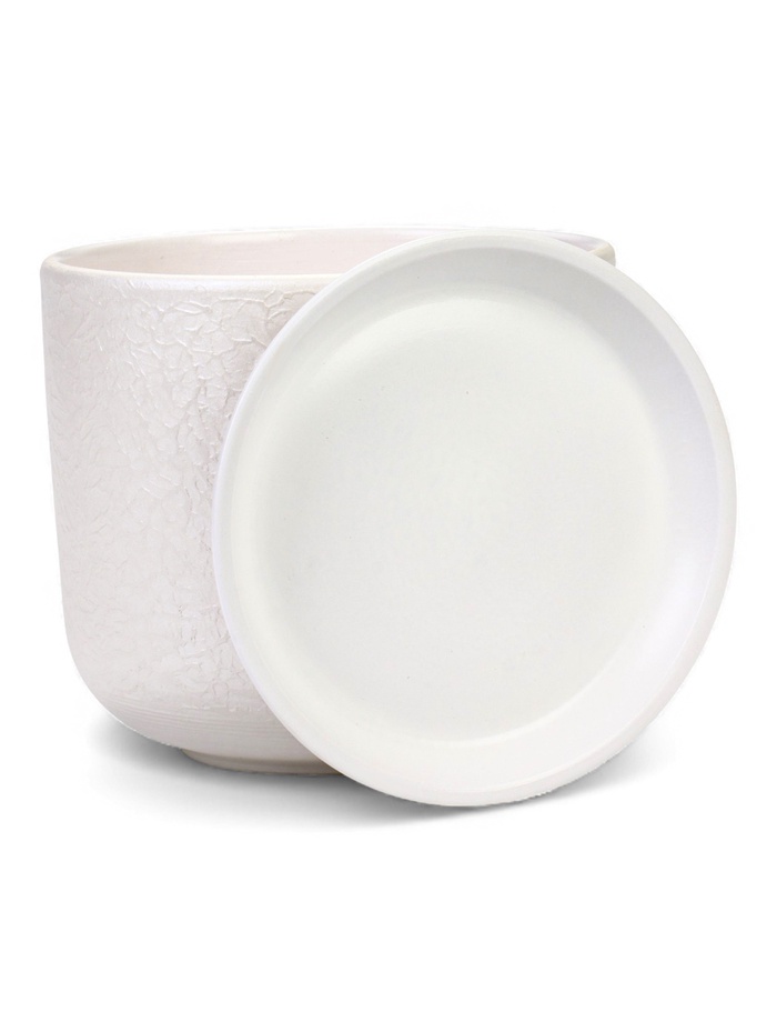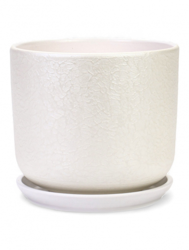 Керамический горшок «Жемчуг» с поддоном, 5.4 л, белый — это настольная модель с рельефной поверхностью. Его светлый цвет и большая вместимость создают элегантный и выразительный акцент для крупных комнатных растений.
