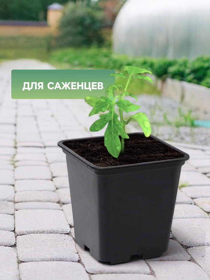 Горшок для рассады, 250 мл, 7×7×8 см, пластик, чёрный