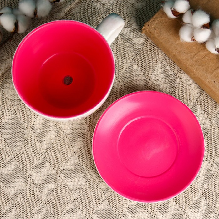 Горшок для цветов «Эмма», 1.3 л, 19×15×10 см, керамика, с поддоном, белый, розовый, Greengo