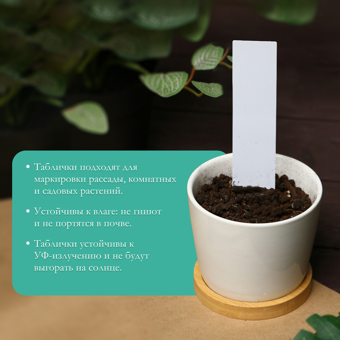 * Оптимальная длина — 10 см: бирки легко устанавливаются и видны среди листвы. Их размер идеально подходит для аккуратного размещения названий ваших растений или другой информации.