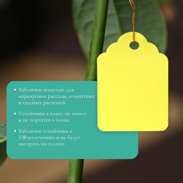 * Удобная форма: бирку можно легко подвесить на ветку, стебель или колышек с помощью шпагата или проволоки. Такой способ крепления не повреждает нежные побеги и подходит для кустарников, деревьев и вьющихся растений.