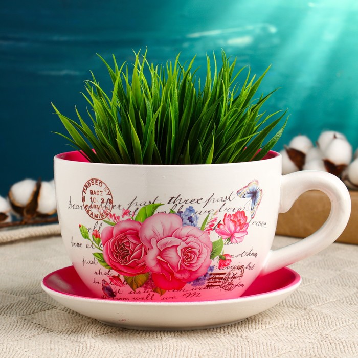 Горшок для цветов «Эмма», 1.3 л, 19×15×10 см, керамика, с поддоном, белый, розовый, Greengo