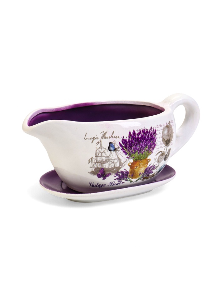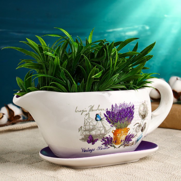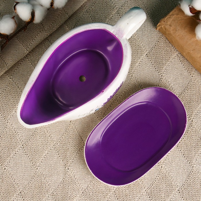 Горшок для цветов в форме кувшина «Агнес: лаванда» керамический, с поддоном, 1.1 л, 25×11×11 см, бело-фиолетовый