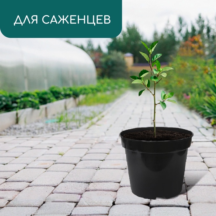 Чёрный горшок для растений 10 л — вместительная ёмкость для выращивания крупных саженцев, кустарников и многолетних культур. Объём обеспечивает простор для развития корневой системы в течение всего сезона.