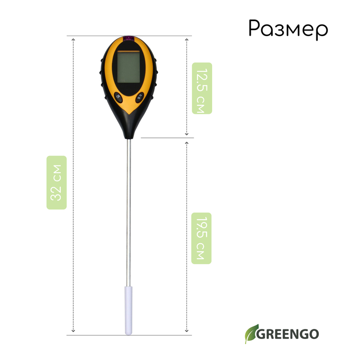 Измеритель почвы 4 в 1: для влажности, кислотности, освещённости и температуры, Greengo