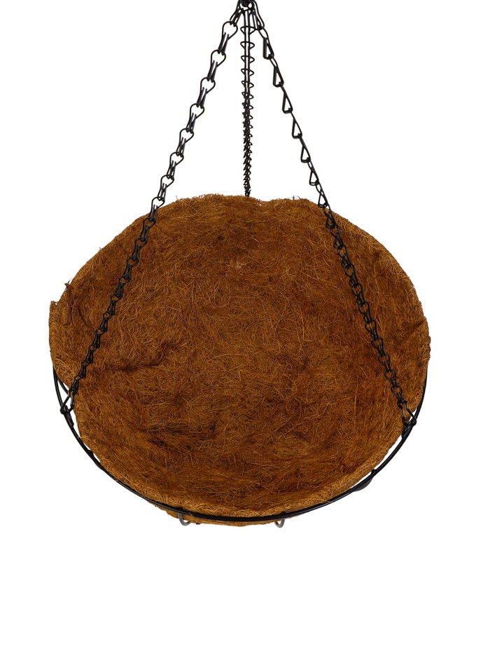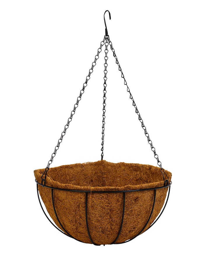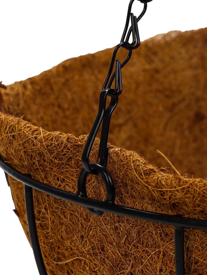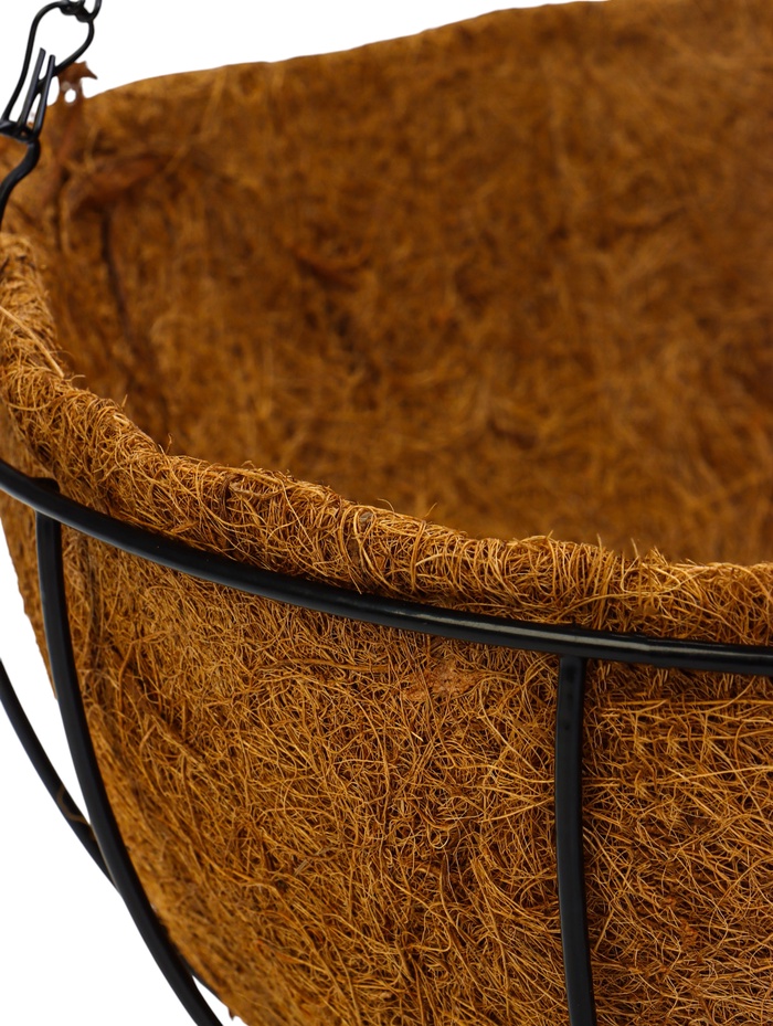 * Натуральные материалы: металл устойчив к погодным условиям, а кокосовое волокно хорошо удерживает влагу и пропускает воздух к корням.