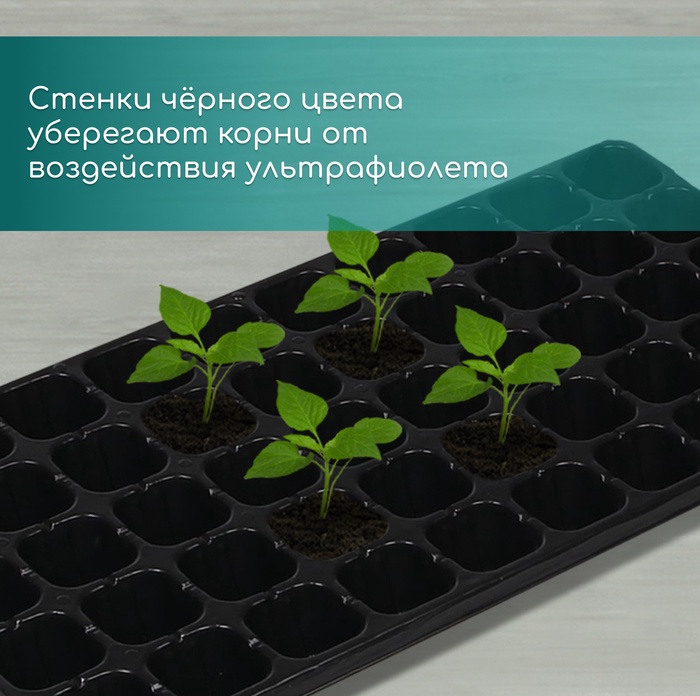 Рассадная кассета на 50 ячеек — подходит для выращивания культур с длительным периодом развития. Увеличенный объём ячеек даёт растениям больше времени для роста перед пересадкой.