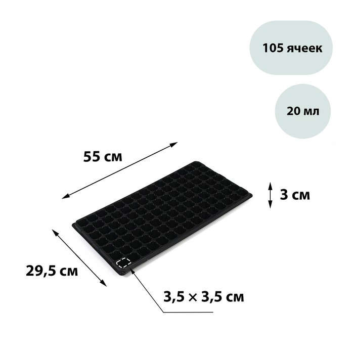* Объём ячейки 20 мл: подходит для начального этапа выращивания, когда растениям не требуется много грунта. Идеально для проращивания семян и получения молодых сеянцев.