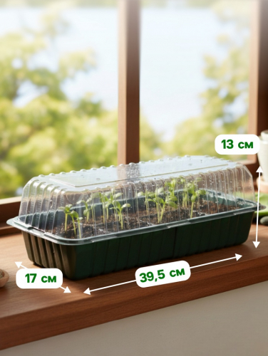 * Прозрачная крышка: создаёт парниковый эффект для быстрого прорастания семян. Поддерживает постоянную влажность и температуру вокруг растений.