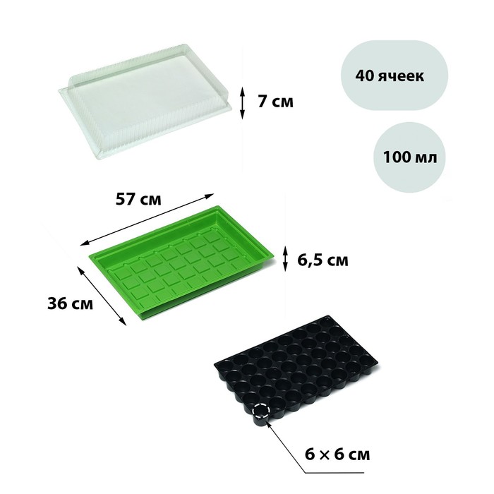 Мини-парник для рассады, 57×36×13.5 см, 1 вставка, 40 ячеек, Greengo