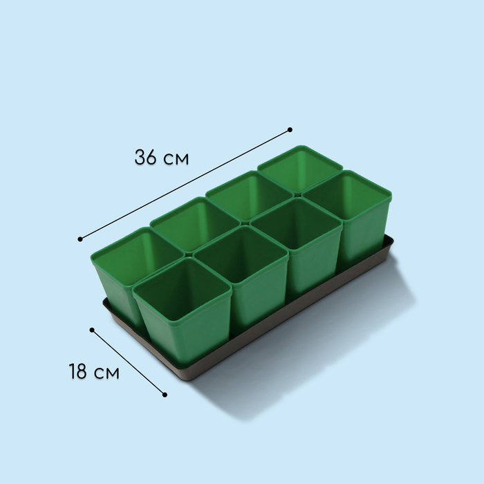 Набор для рассады: стаканы по 600 мл (8 шт.), поддон 36×18 см, цвет МИКС, Greengo