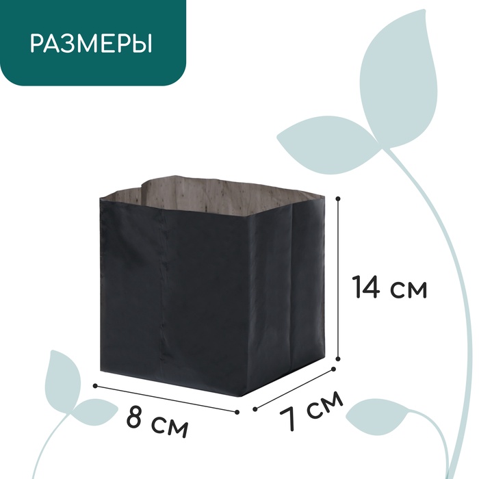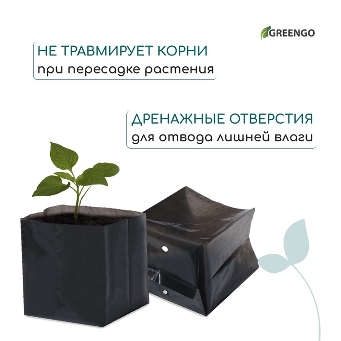Пакет для рассады, 600 мл, 8×14 см, полиэтилен, толщина 50 мкм, с перфорацией, чёрный, Greengo