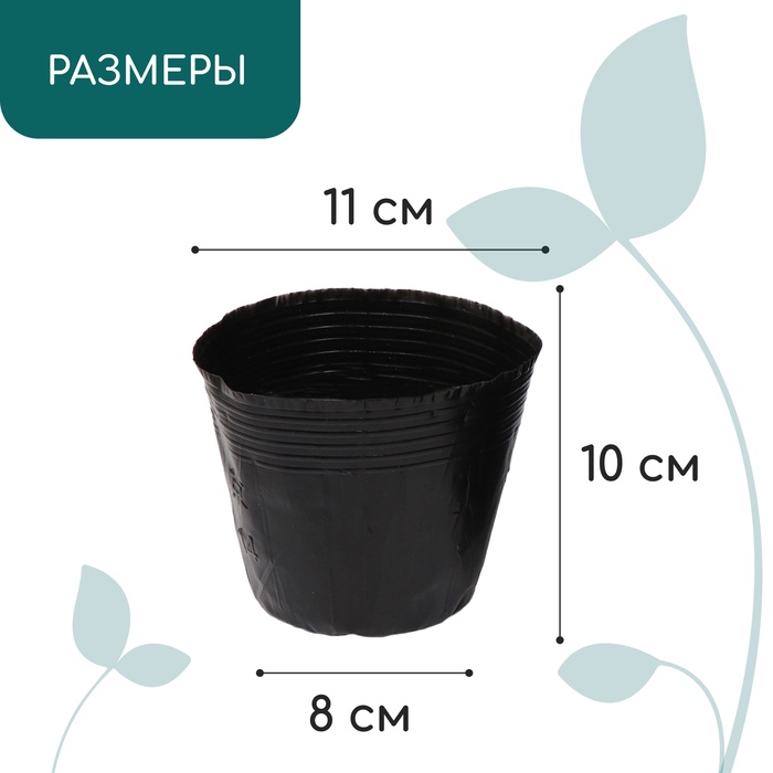 Пакет для рассады, 600 мл, d=11 см, h=10 см, полиэтилен, толщина 50 мкм, чёрный, Greengo