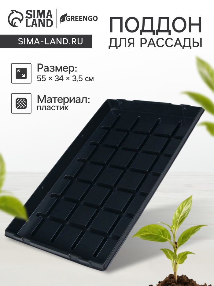 Поддон для рассады, 55×34×3.5 см, пластик, чёрный, Greengo