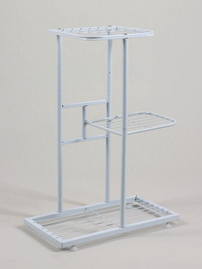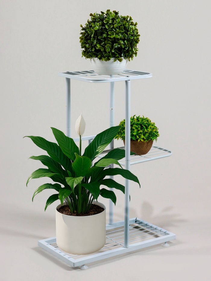 Напольная подставка для цветов с тремя полками станет стильным и функциональным дополнением интерьера. Её лаконичный дизайн и белый оттенок гармонично впишутся в современное пространство, подчеркнув эстетику комнаты или офиса. Устойчивая металлическая конструкция обеспечивает надёжность и долговечность, а три уровня полок позволяют эффектно разместить растения, книги или декоративные элементы.