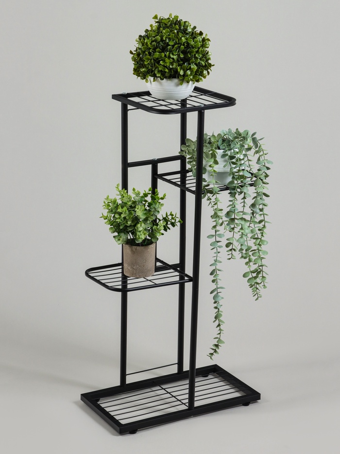 Подставка для цветов с 4 полками станет стильным решением для организации пространства на балконе, в прихожей или гостиной. Металлическая конструкция высотой 82 см обеспечивает надёжность и долговечность использования. Компактные размеры позволяют разместить горшочные растения без потери свободного места.