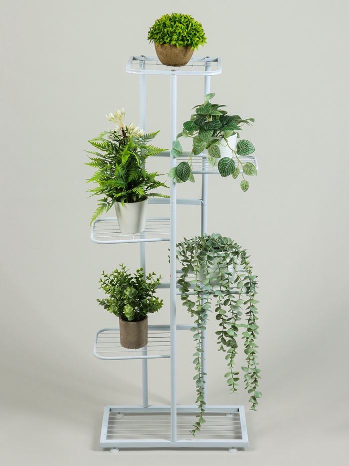 Превратите пространство в стильный многоуровневый сад с помощью напольной конструкции из металла. Шесть полок создают идеальное сочетание функциональности и элегантности, которое украсит любой интерьер.