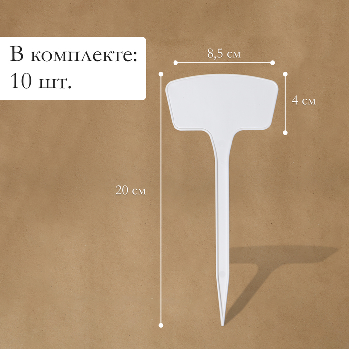 Таблички садовые, для маркировки растений, 20 см, набор 10 шт., пластик, белые, Greengo