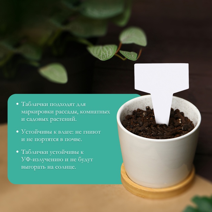 * Легкость использования: без усилий вставьте таблички в землю рядом с растениями. Они помогут быстро находить нужные сорта и не забыть о специфике ухода за каждым видом.