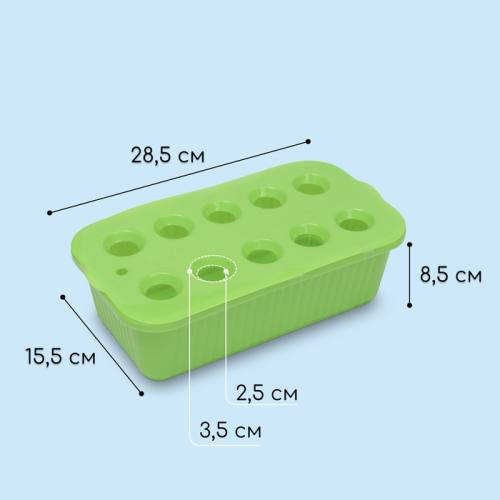 Ящик для выращивания зелёного лука, 29×16×8.5 см, 2.5 л, 10 лунок, пластик, зелёный, Greengo