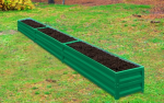 Грядки изготовлены из оцинкованного металла с полимерным покрытием толщиной 0,5 мм, по высоте стыкуеюся из 2-х панелей по 20 см, каждая панель усилена 8-ми ребрами жесткости, все острые края завальцованы. Удобная сборка на болтах (нужен только ключ на 8).