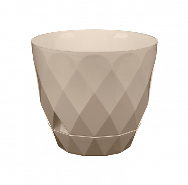 Ни один современный интерьер не обходится без комнатных растений. В современном мире большую популярность имеют горшки и кашпо из пластика. Кашпо из пластика от линейкиLaurelобладает минималистичной и рельефной структурой, напоминающей огранку драгоценного камня, а также спокойный базовый цвет, позволяющий гармонично вписать кашпо в домашний интерьер. Изделие выполнено из полипропилена – 100% перерабатываемого материала. Состоит из корпуса и интегрированного поддона, не выступающего за дно горшка. Корпус горшка имеет несколько дренажных отверстий, обеспечивающих качественную вентиляцию корней растений. А поддон служит ёмкостью для сбора воды и снабжён специальной выемкой для слива лишней жидкости, которая рекомендуется при уходе за комнатными цветами.Преимущества такого кашпо:• медленная скорость просыхания грунта;• лёгкий вес горшка;• быстрая пересадка;• низкая теплопроводность;• относительная низкая цена;• экологичность;• долговечность и надёжность.Характеристики:• объём – 2,3 л;• диаметр – 17,5 см;• цвет – бежевый.