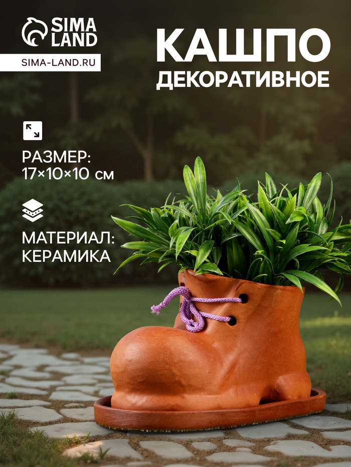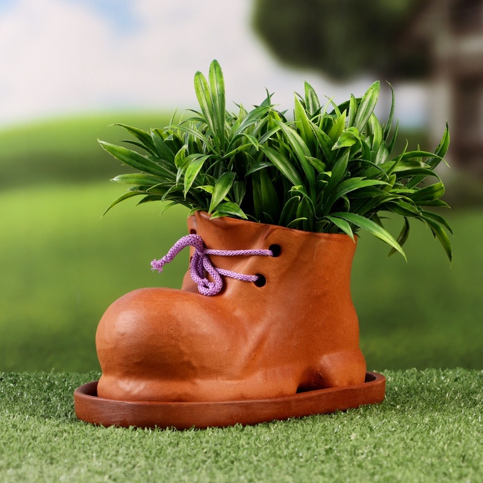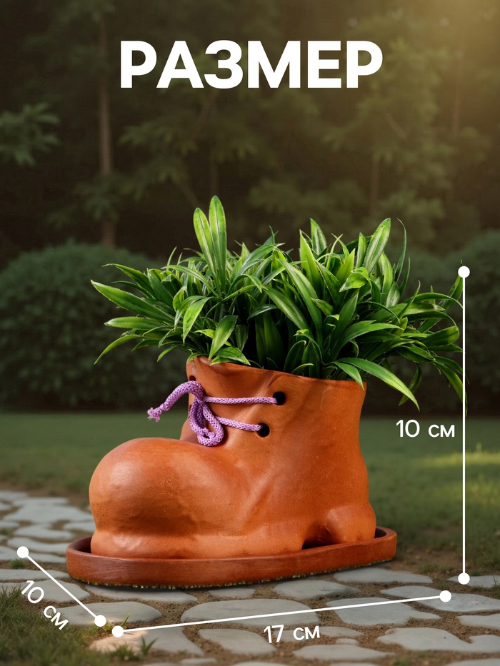Практичное украшение: кашпо подходит не только для комнатных растений, но и для стильного хранения декоративных элементов или использования в качестве оригинального подарка. Создайте в своём доме атмосферу уюта и креатива, добавив кашпо в виде башмака.
