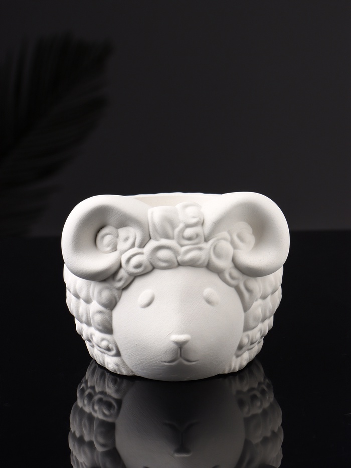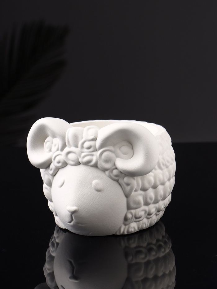 Декоративное кашпо для цветов «Баран», 12×10×7 см, гипс, белое