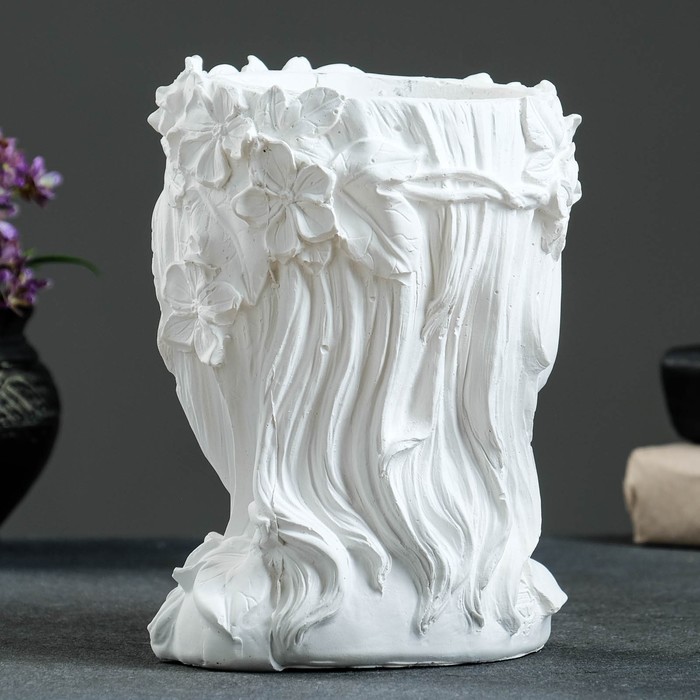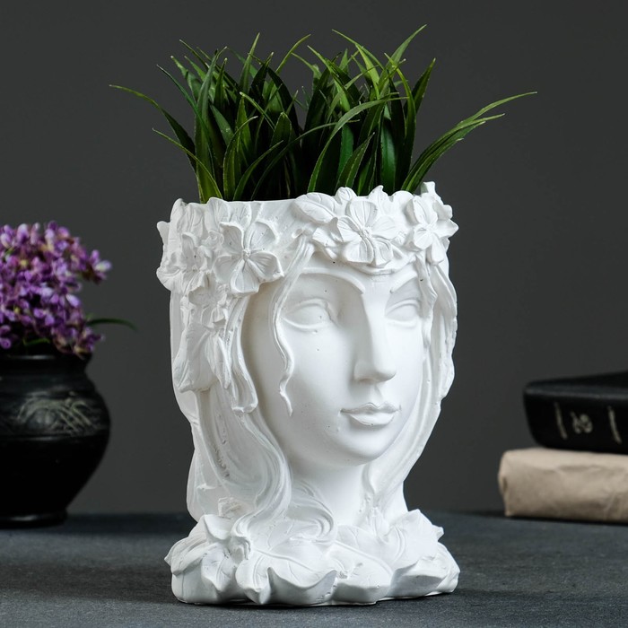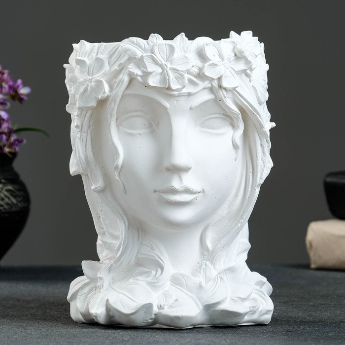 Декоративное кашпо для цветов «Девочка венком», 500 мл, 19×14×14 см, гипс, белое