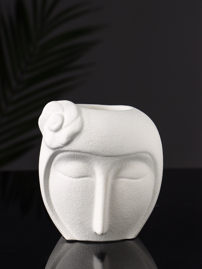 Представляем изящное кашпо в виде головы девушки с цветком, которое станет настоящим произведением искусства в вашем интерьере. Изготовленное из высококачественного гипса, это изделие сочетает в себе прочность и элегантность. Белоснежный цвет добавляет универсальности, позволяя гармонично вписаться в любой стиль — от классики до современного минимализма. Высота 11 см и компактная ширина 10 см делают его идеальным для размещения на столе, полке или подоконнике.