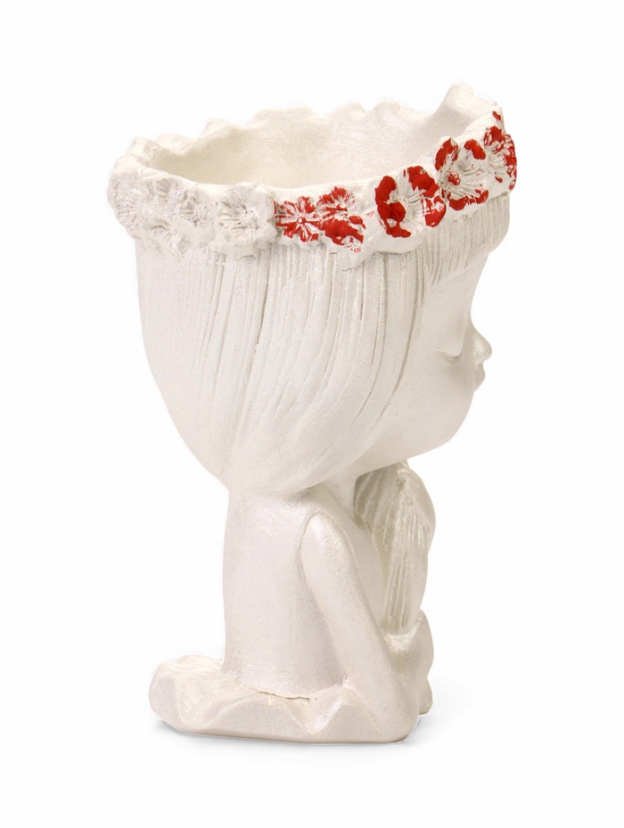 Декоративное кашпо для цветов «Девушка с косой», 80 мл, 11×8×8 см, гипс, белое