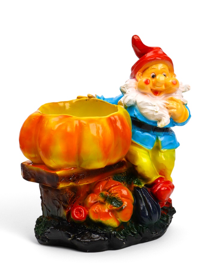Декоративное кашпо для цветов «Гном с тыквой», 40×31×20 см, гипс