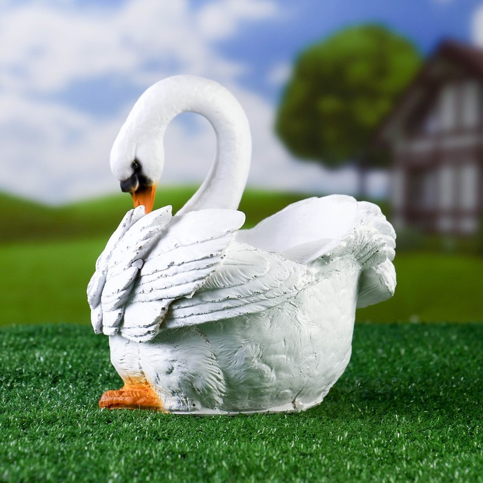 Декоративное кашпо для цветов «Лебедь», 25×15 см, полистоун