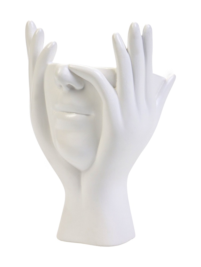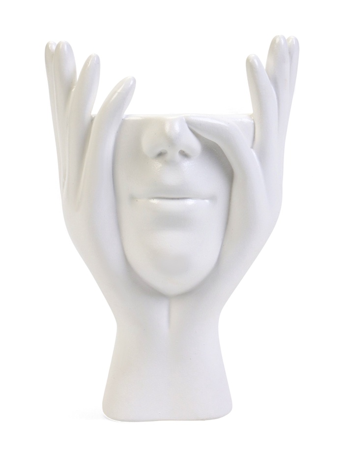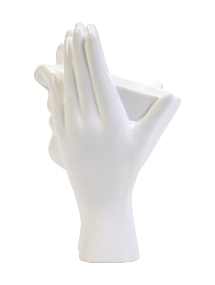 Фигурное белое кашпо «Мечты в руках» — изысканное настольное украшение для вашего интерьера, выполненное из прочного гипса. Это стильное кашпо придаст уникальный шарм вашему дому или офису.