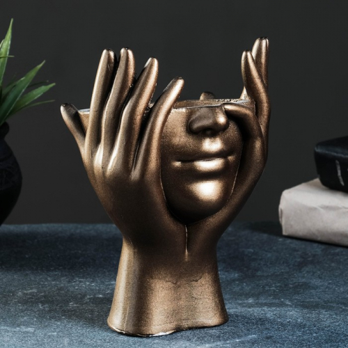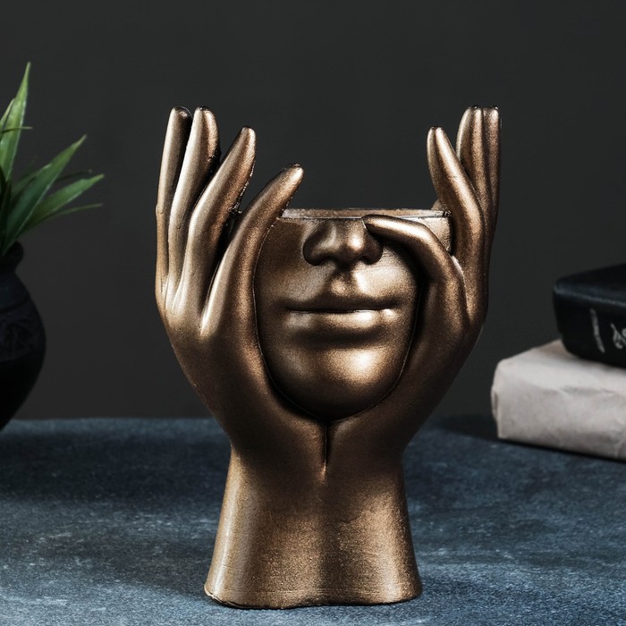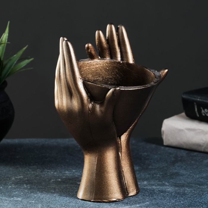 Декоративное кашпо для цветов «Мечты в руках», 380 мл, 20.5×13.5×13 см, гипс, цвет бронза