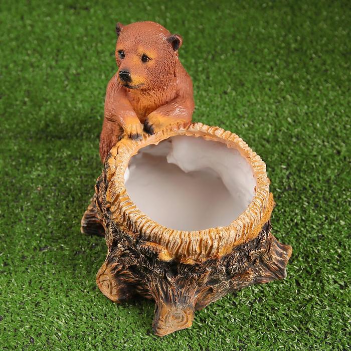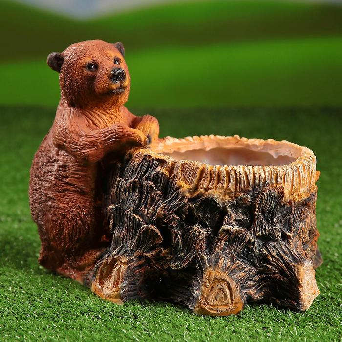 Декоративное кашпо для цветов «Пень с мишкой», 2.1 л, d=12 см, h=19 см, полистоун