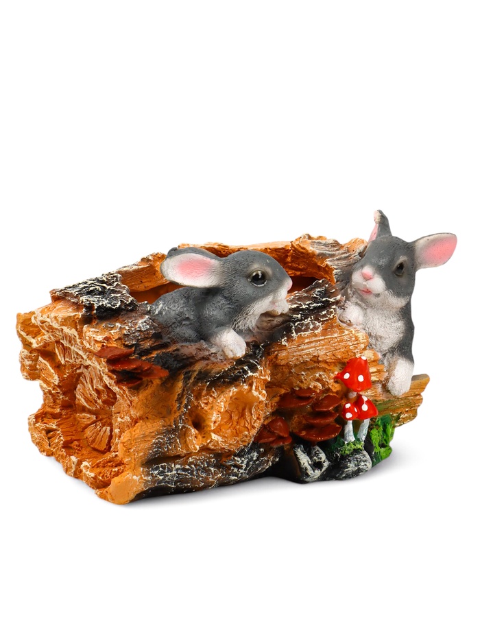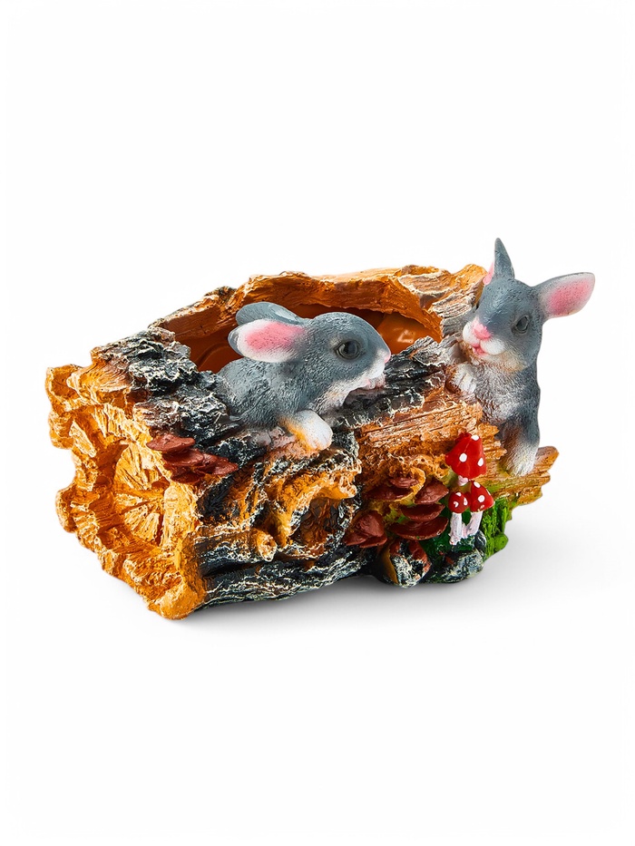Декоративное кашпо для цветов «Пень с зайцами» — оригинальное украшение для вашего интерьера или сада. Эта кашпо станет настоящей находкой для тех, кто ищет необычное решение для размещения комнатных растений.