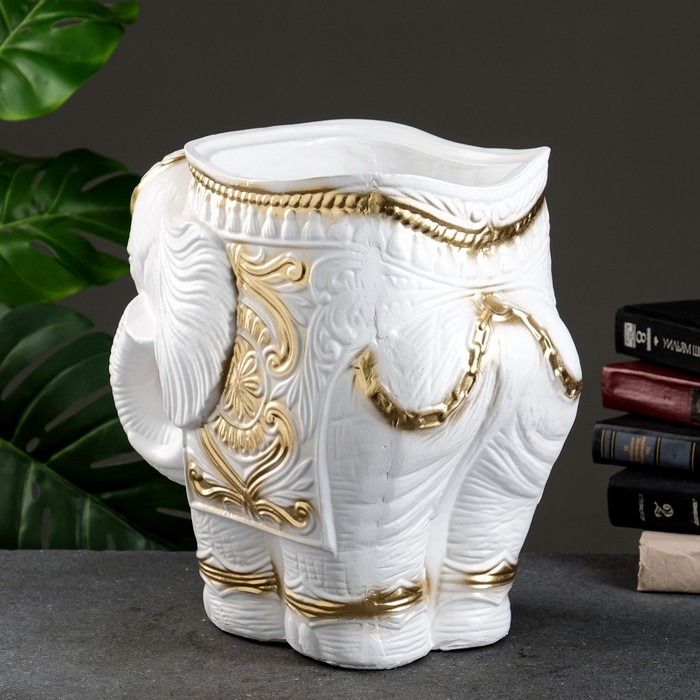 Декоративное кашпо для цветов «Слон», 6 л, 35×22×36 см, гипс, белое
