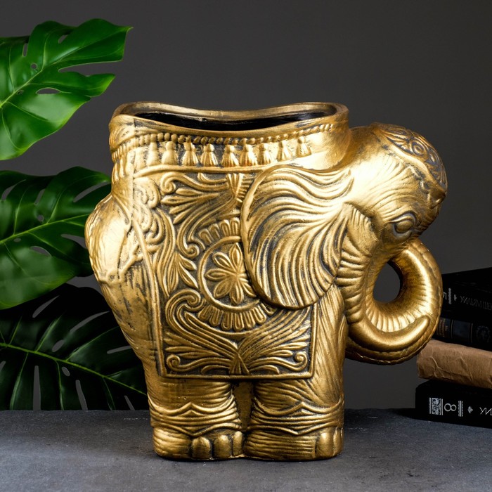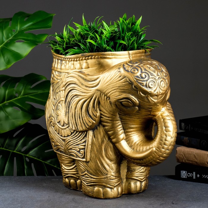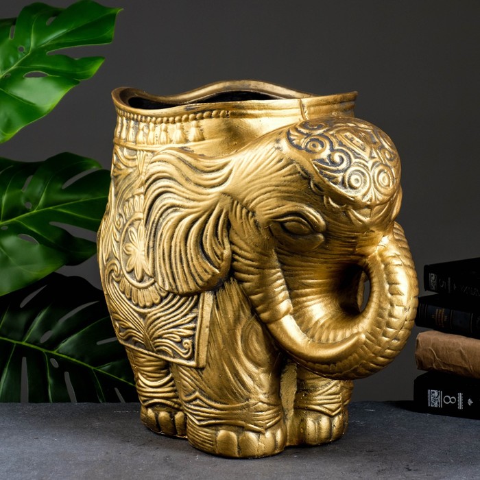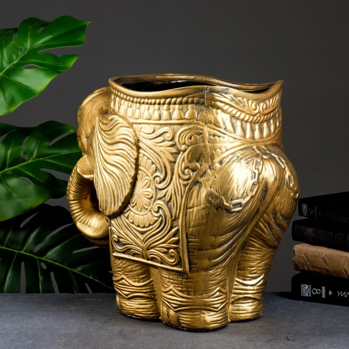 Декоративное кашпо для цветов «Слон», 6 л, 35×22×35 см, гипс, золотистый