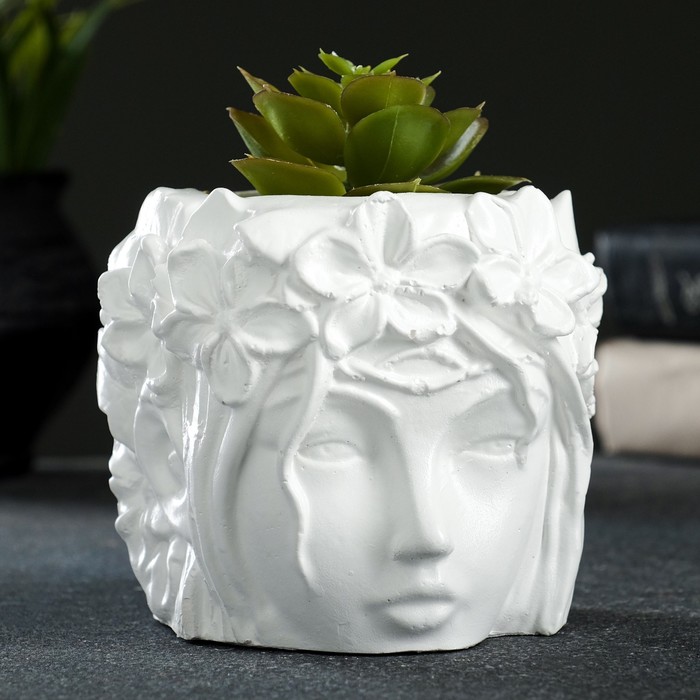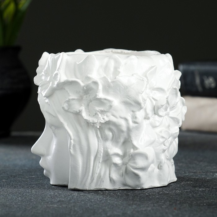 Декоративный горшок «Лицо девушки», гипс, 350 мл, 12×10×12 см, белый